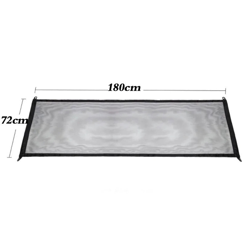Esta puerta mide 72 cm de alto y se expande hasta 110 cm/180 cm de ancho - Recinto de seguridad para mascotas perfecto para puertas, entre paredes o escaleras, en interiores y exteriores - Construido con resistente tejido de malla parcialmente transparente para resistir el abuso de las mascotas - Tejido único Barrera que se retrae fácilmente para un paso rápido total o parcial. Completamente ensamblada para uso inmediato. No se requieren herramientas - Ligero y portátil para satisfacer todas sus necesidades mientras viaja - Cada juego incluye una tela tejida, dos postes estirables y cuatro ganchos adhesivos Lista de paquetes: 1 x red de separación para mascotas 2 x varillas telescópicas 4 x ganchos